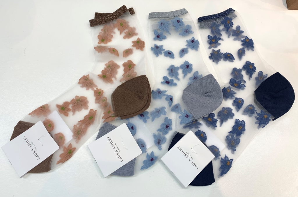 シアー感が涼しげで華やかな小花柄のオシャレなソックスです。