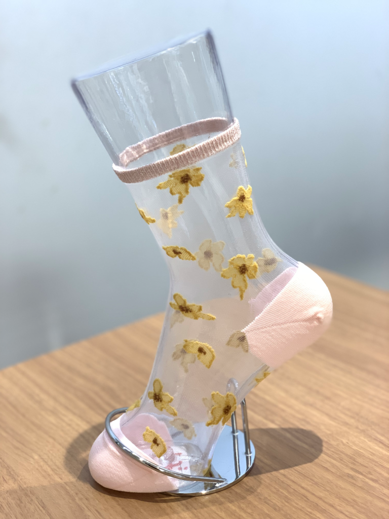 シアー感が涼しげで華やかな小花柄のオシャレなソックスです。