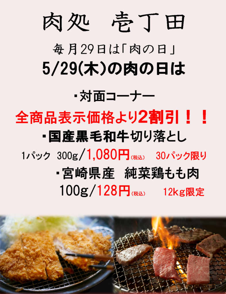 肉処 壱丁田 肉の日ご案内