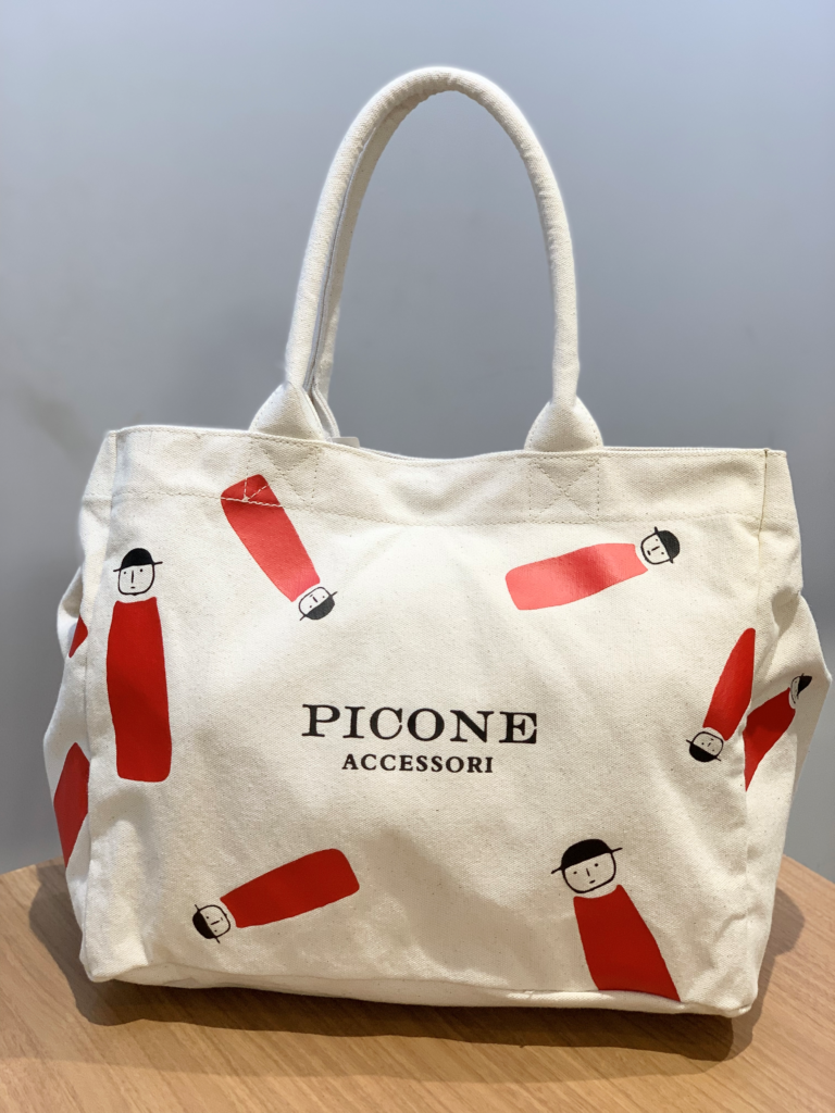 まち幅が広く大容量の収納できるコットン素材のバッグ。