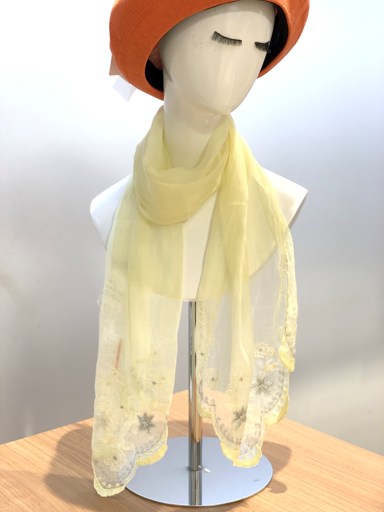 綿とシルクの混合ストールで先端の刺繍が美しく