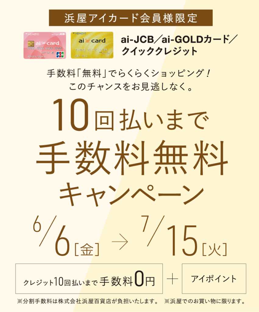 【浜屋アイカード会員様限定】 10回払いまで手数料無料キャンペーン