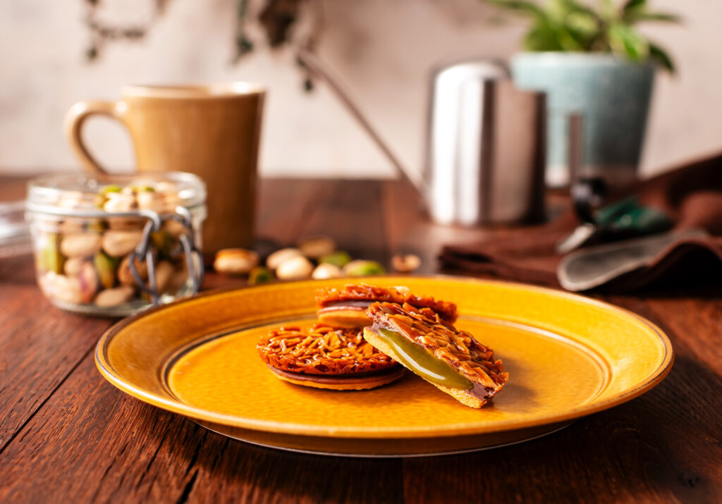 美しいピスタチオグリーン色に焚き上げた、濃厚な味わいのピスタチオキャラメルを