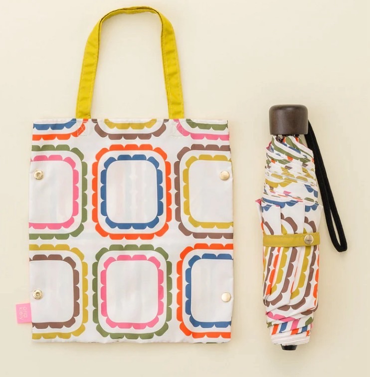 毎日のおともにしやすいコンパクトさが魅力の折りたたみ傘は、サッとしまえるミニトート仕様の傘袋付き。