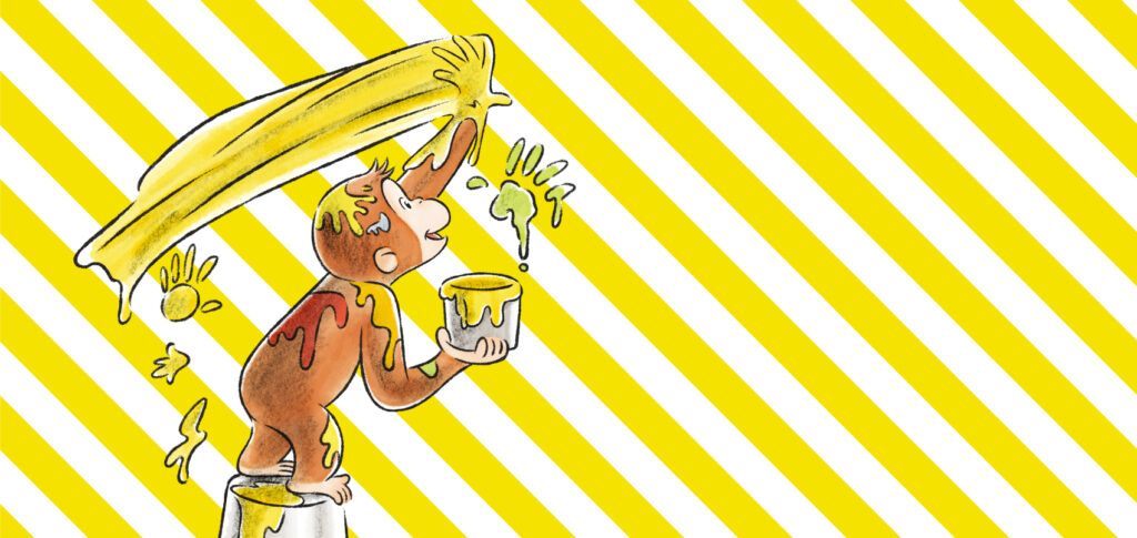「おさるのジョージ」は、アメリカの絵本作家レイ夫妻によって1941年に刊行された絵本『Curious George』に登場し、日本でも『ひとまねこざる』シリーズとして1954年に出版されて以来、長く愛されているキャラクターです。
