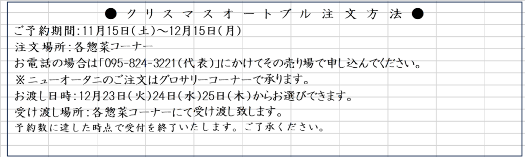 浜ちか食品 クリスマスオートブルご予約承りのご案内