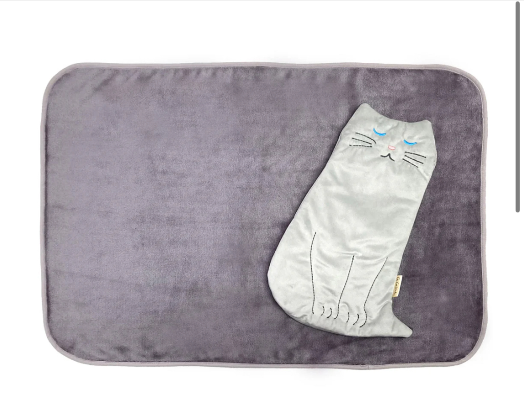 ネコ型のケース付のミニブランケット。