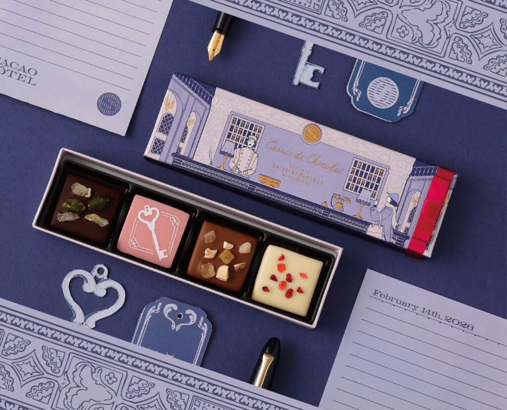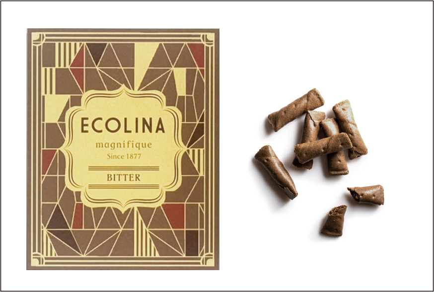 パリッと軽やかに薄く焼いた生地にほろ苦いビターチョコレートを閉じ込めました。かわいいプティスイーツです。