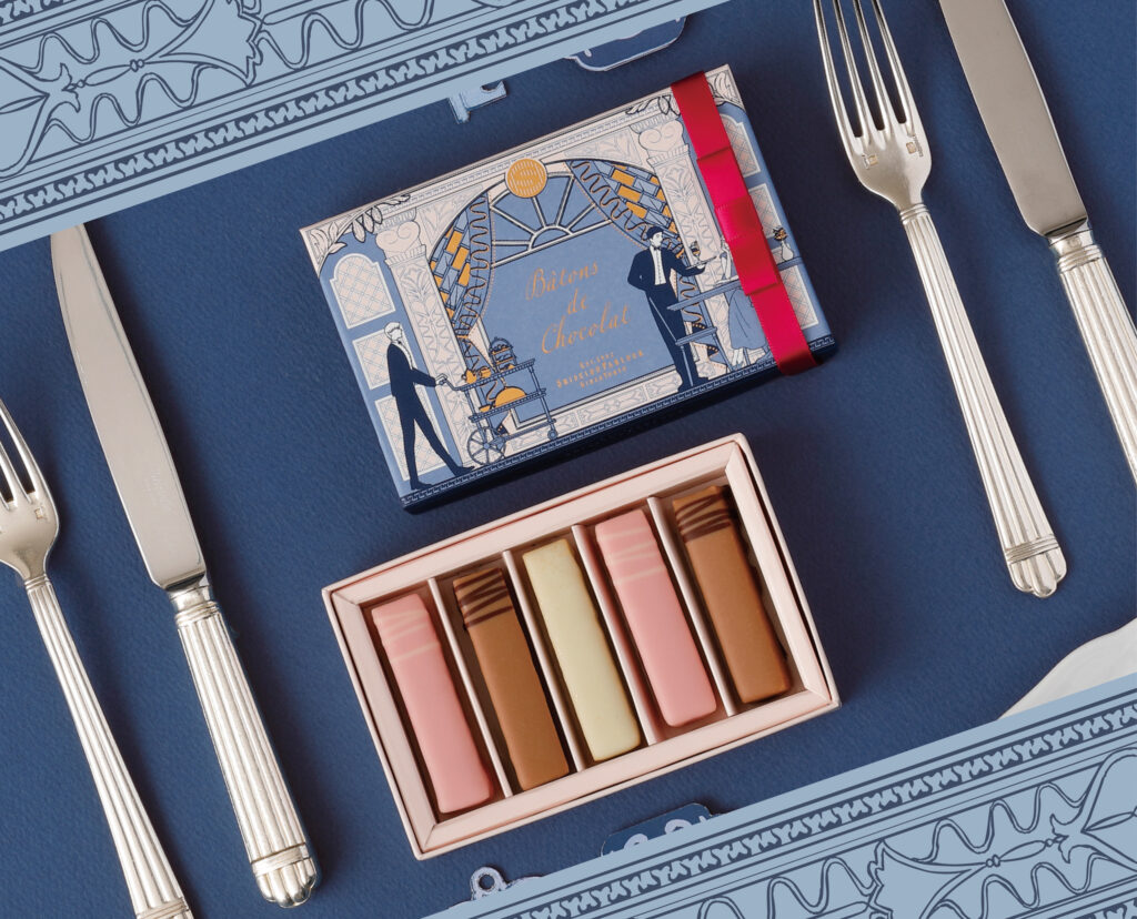 香ばしく焼きあげた生地にチョコレートをまとわせたバトンと、