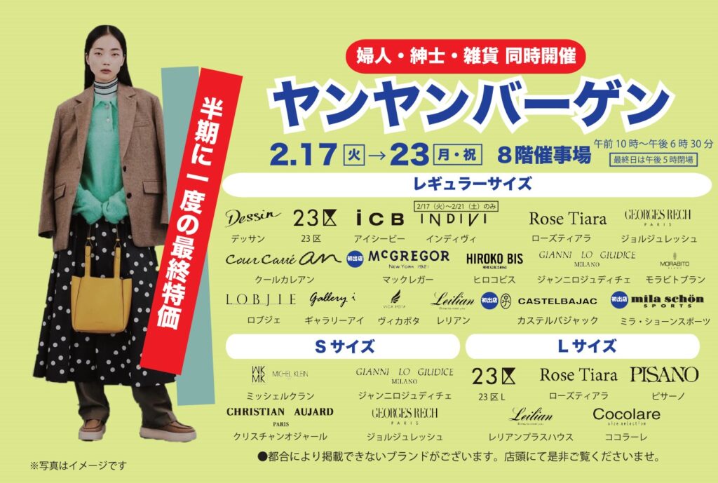 【婦人・紳士・雑貨・同時開催】ヤンヤンバーゲン
