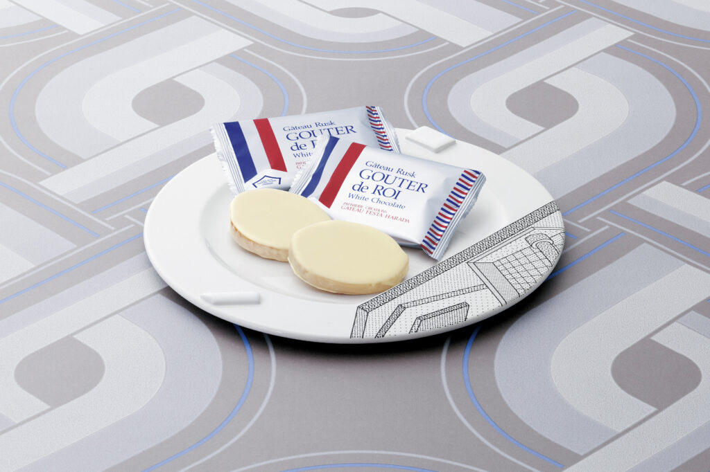 ガトーラスクの片面にホワイトチョコレートをコーティングしました。