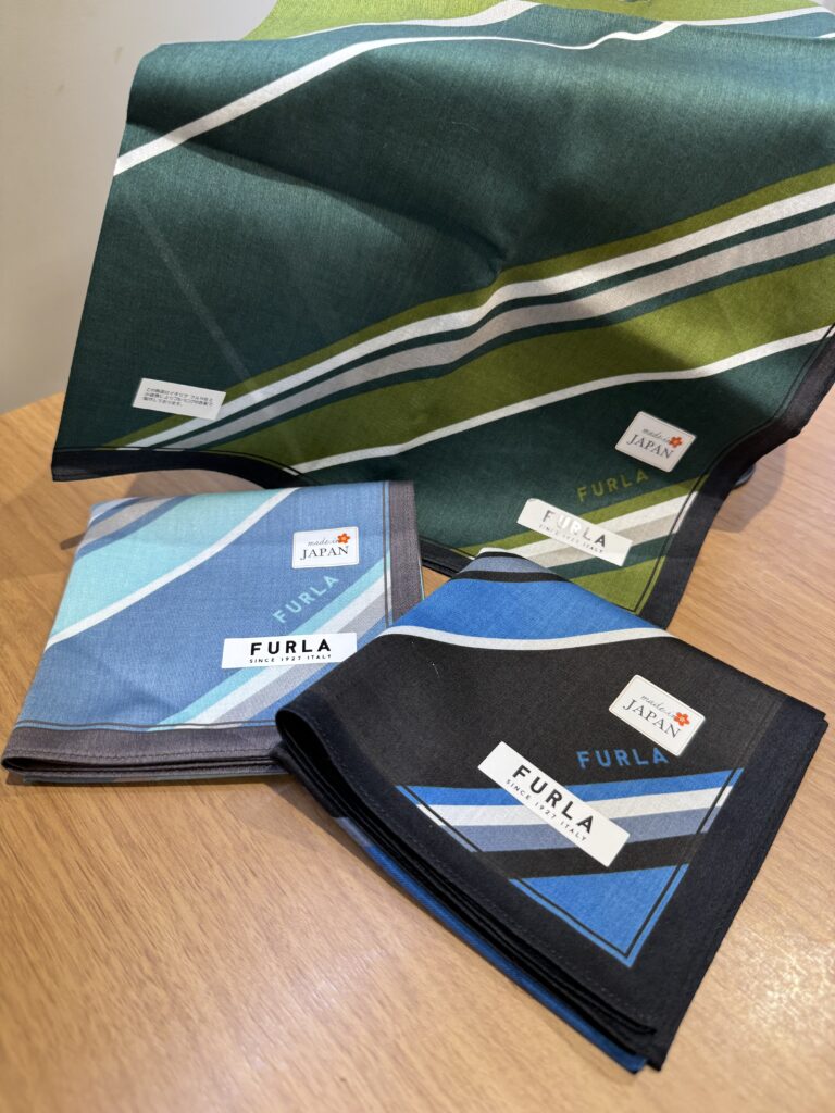 フルラのバックパックの柄をイメージしたバイヤスストライプのプリントハンカチです。
