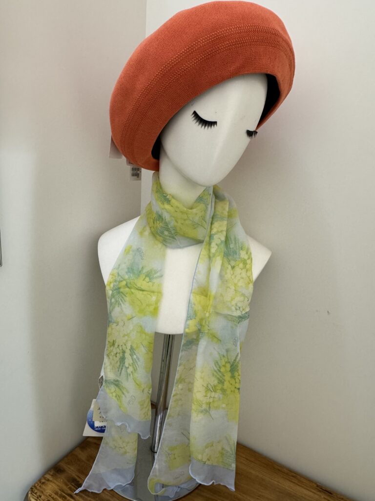 絹100%で、ふんわり軽く、優しい肌触りで首を包んでくれます。