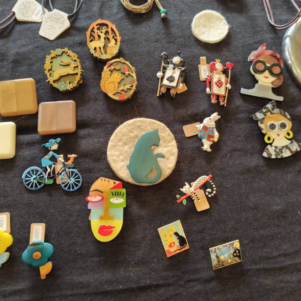Warm and cozy お気に入りが見つかる雑貨の空間。イヤリング、ピアス、ネックレス、ブローチの他にポーチやストールなどの小物類もご紹介いたします。