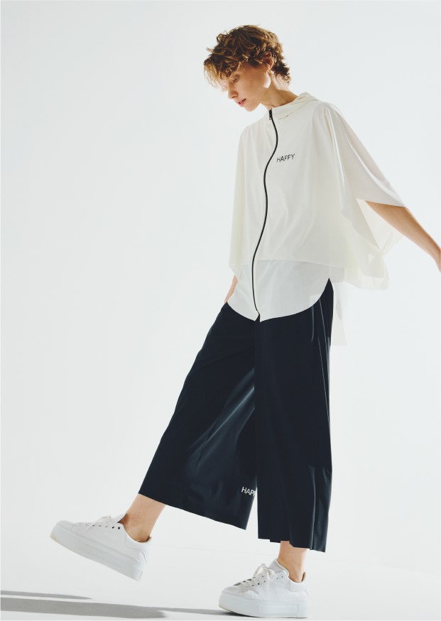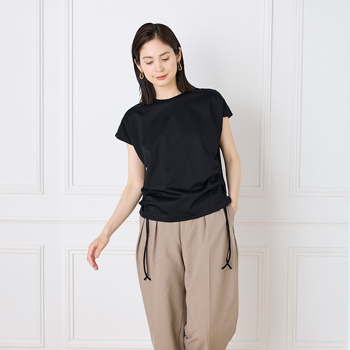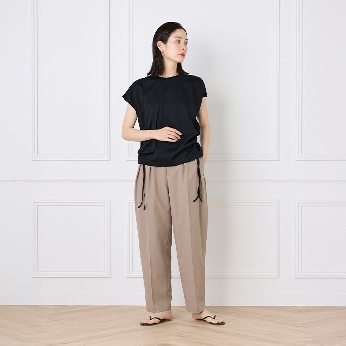 ギャザーの分量を調整することで、お好みのシルエットで着こなせます。
