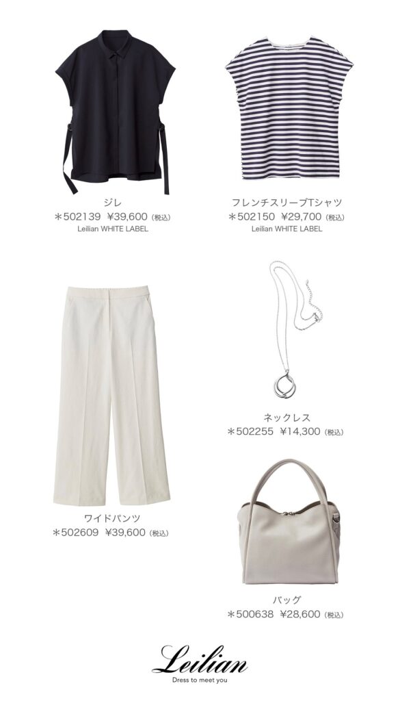 ドロストは片結びにすることで、シンプルで洗練された印象に。