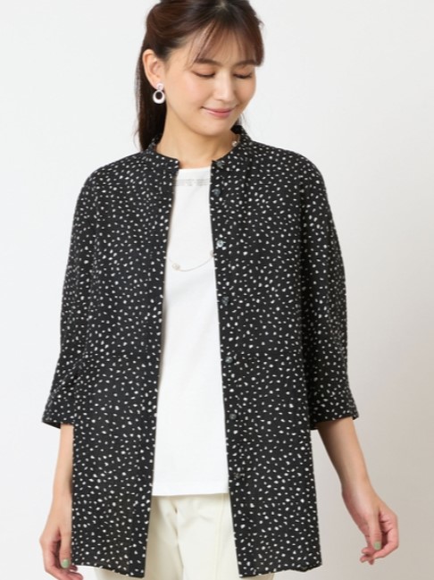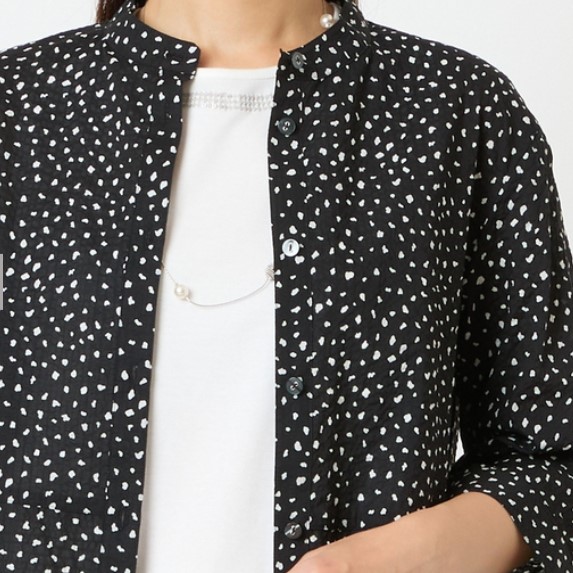 ラフなドット柄が上品な印象。1枚でも羽織りとしても着ていただけます。手洗い可