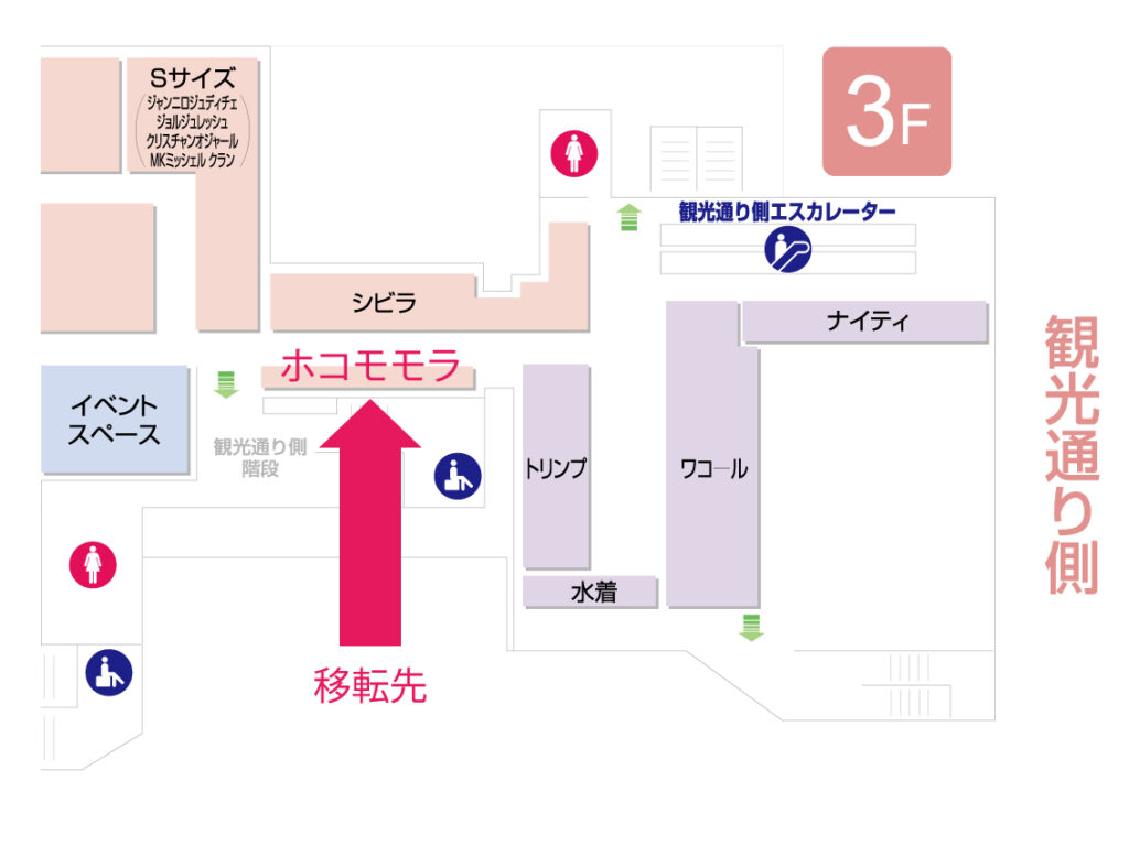 ホコモモラ 移転のお知らせいつも長崎浜屋ホコモモラをご愛顧いただきありがとうござます。このたび、当店は移転する運びとなりました。2階エスカレーターサイドでの営業は、8月20日(水)までとなります。8月22日(金)から3階シビラに移転となりシビラ&ホコモモラとなります。※8月21日(木)は店休日です。