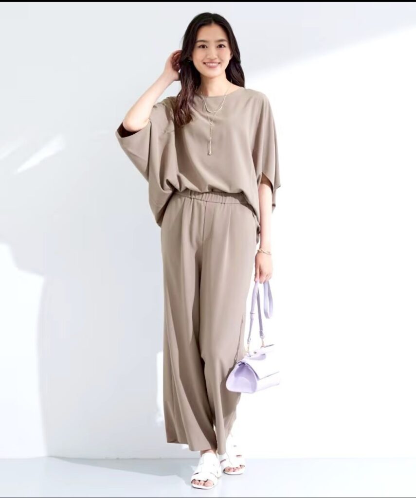 女性らしいキレイめな印象に仕上げたドルマントップスです。