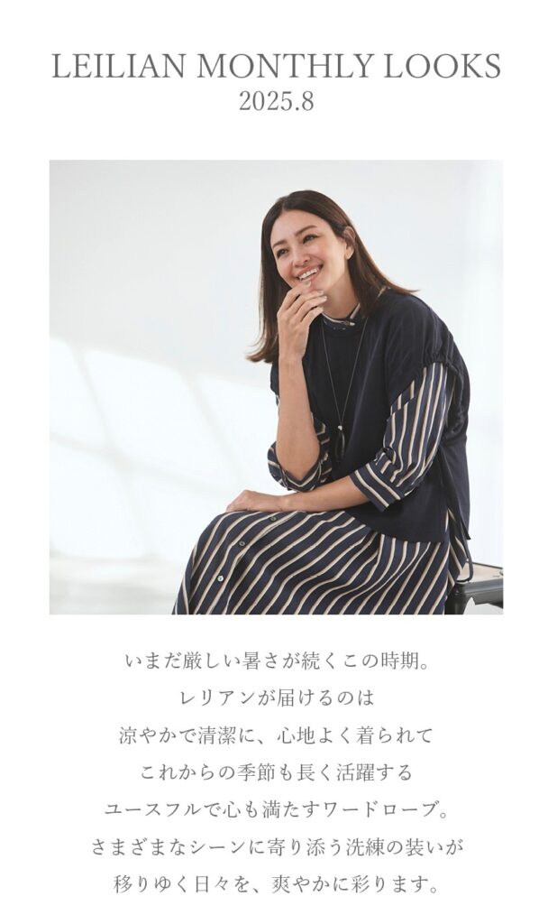 シンプルでニュアンスたっぷりなシエルエットで、どんなシーンでもお召しいただけます。