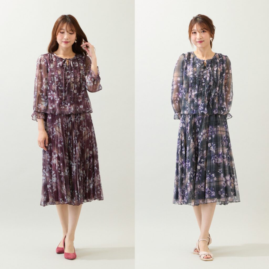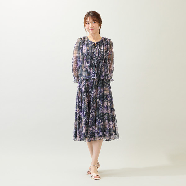 ローズティアラオリジナルのチェックに陰影感のある花柄がシックなセットアップ