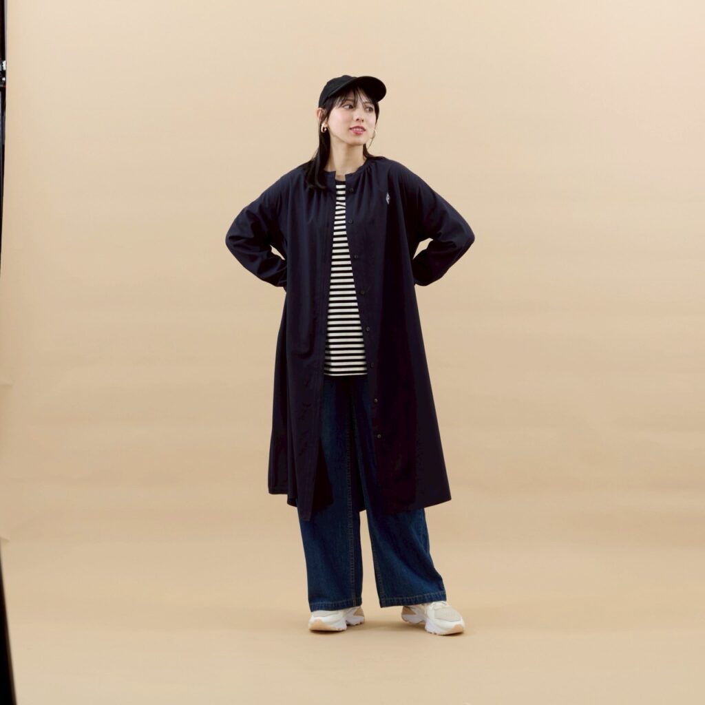 羽織としてデニムとコーディネートで秋らしく。 シワになりにくい素材、水洗い出来ます。