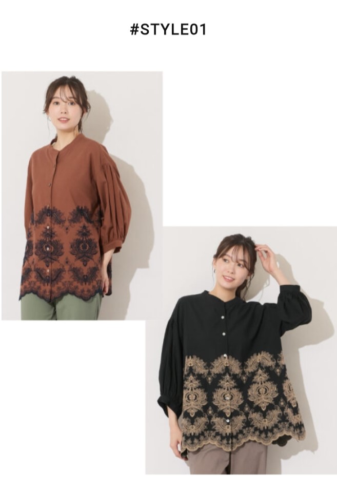 前後身頃に高級感のある刺繍加工が施された生地を使用したブラウス。綿100%で着心地快適です。ドロップショルダーでリラックスムードの、後ヨーク切替、袖切替、袖口にたっぷりギャザーを寄せたふんわりシルエットで抜け感をだしたシルエット。腰回りをしっかりカバーしてくれる丈感がうれしい1枚です。