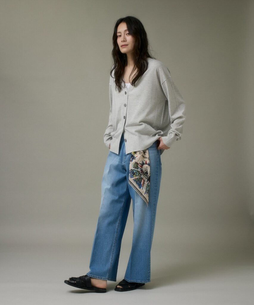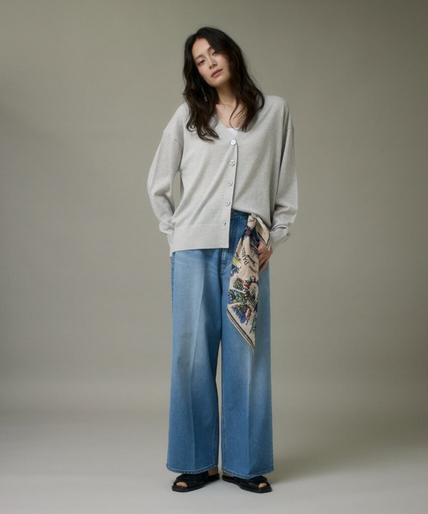 センタープレスがポイントのワイドデニムパンツ。カジュアルな印象のデニムパンツにセンタープレスで立体感を入れる事で、リッチな雰囲気をプラスしました。