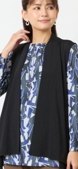 パンツスタイルに合う柄トップス。一枚でも映えますが、ベストやシャツを羽織ってもオシャレです。