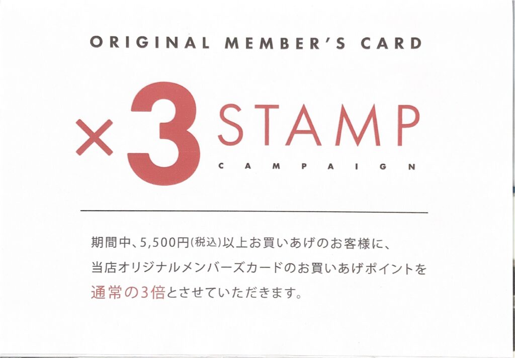 当店オリジナルメンバーズカードのお買い上げポイントを通常の3倍とさせていただきます。