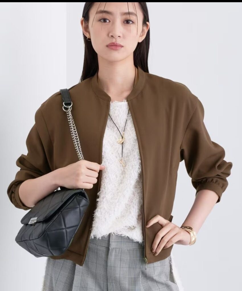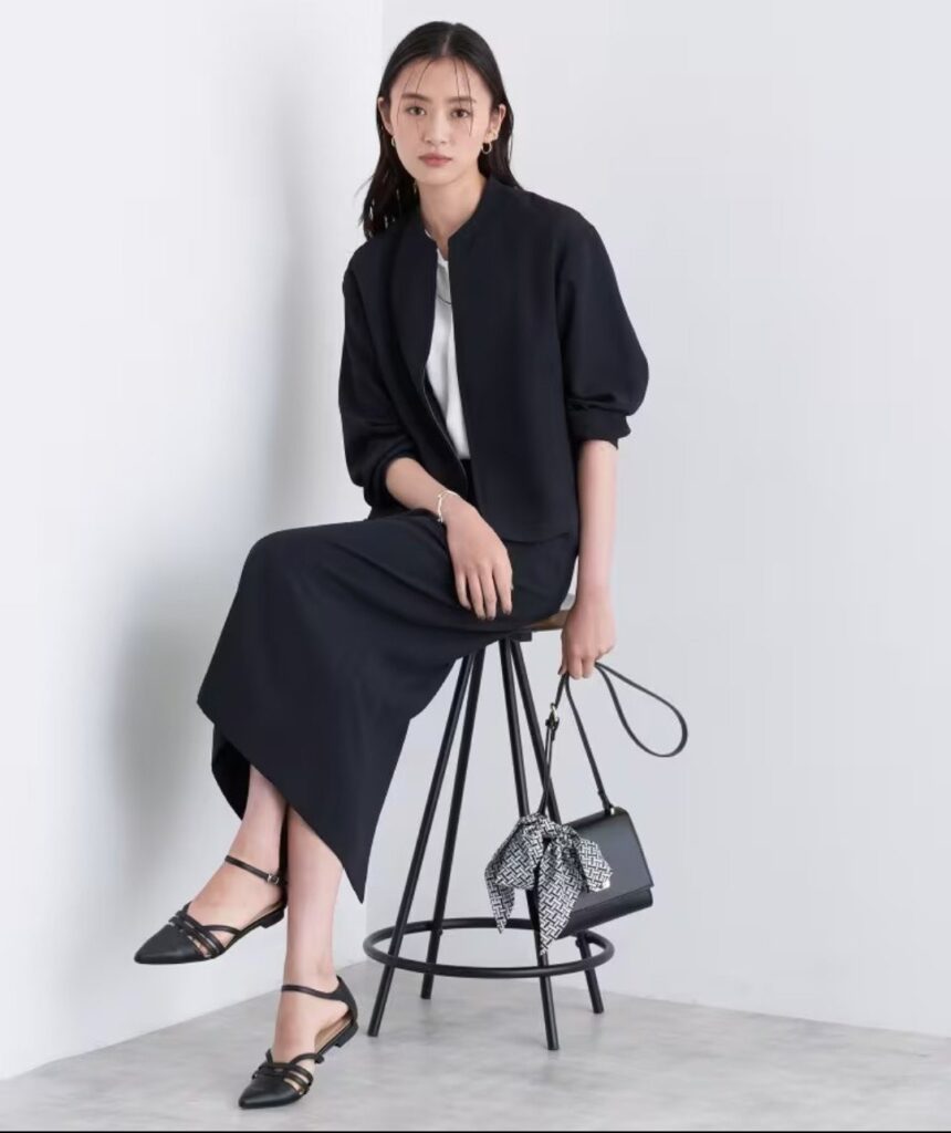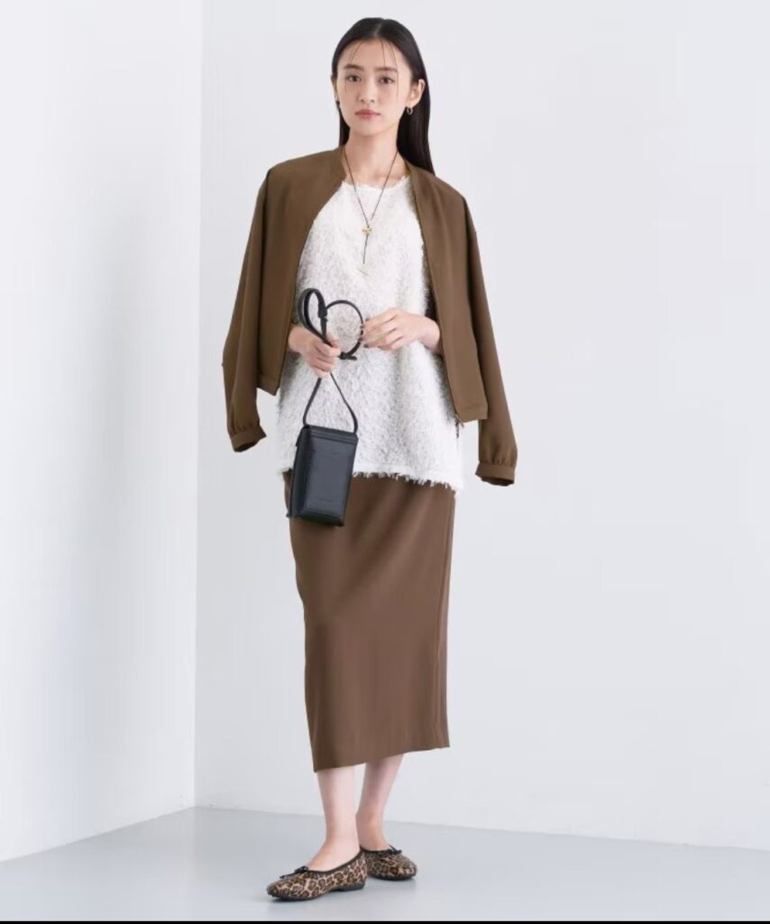 ジョーゼット素材の上品なブルゾンとナロースカート。