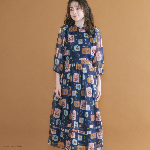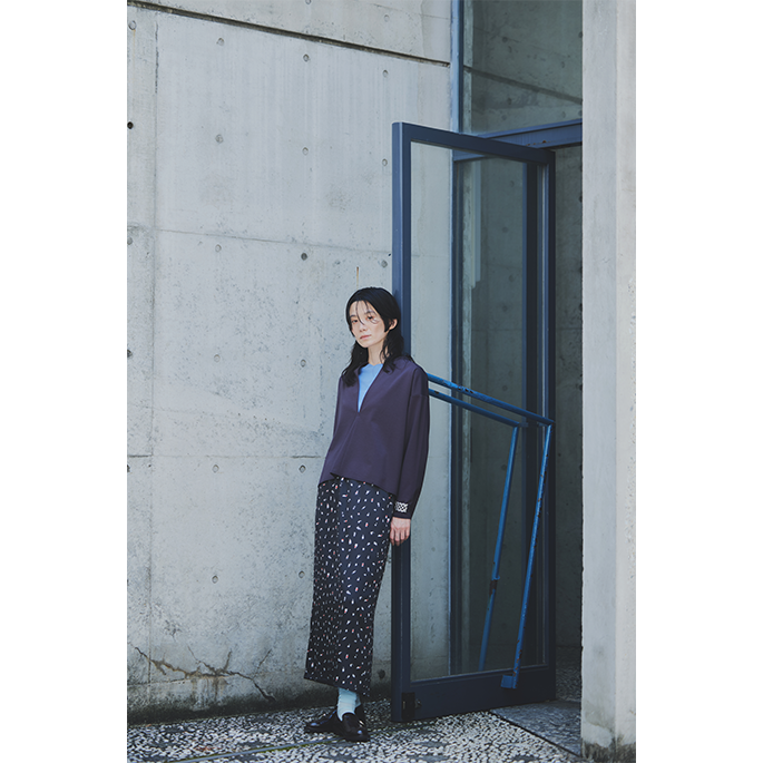 いろんなシチュエーションのイラストをバランスよくMIXしたプリントはJolly poupee×くらはしれいのオリジナルコラボプリント。ふんわりしたボリュームのあるセットアップです。ぜひ店頭にてご覧くださいませ。