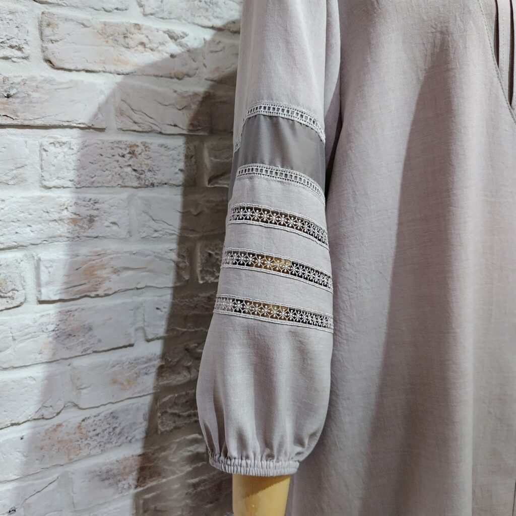さらりとした素材感に、パフスリーブをレースで飾りシンプルな愛らしさのあるワンピースになりました。