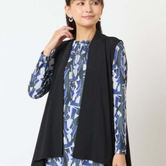 パンツスタイルに合う柄トップス。一枚でも映えますが、ベストやシャツを羽織ってもオシャレです。