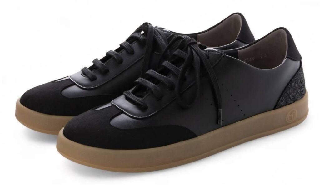 異素材の組み合わせで表情豊かに仕上げ、シンプルながら個性が光る一足。