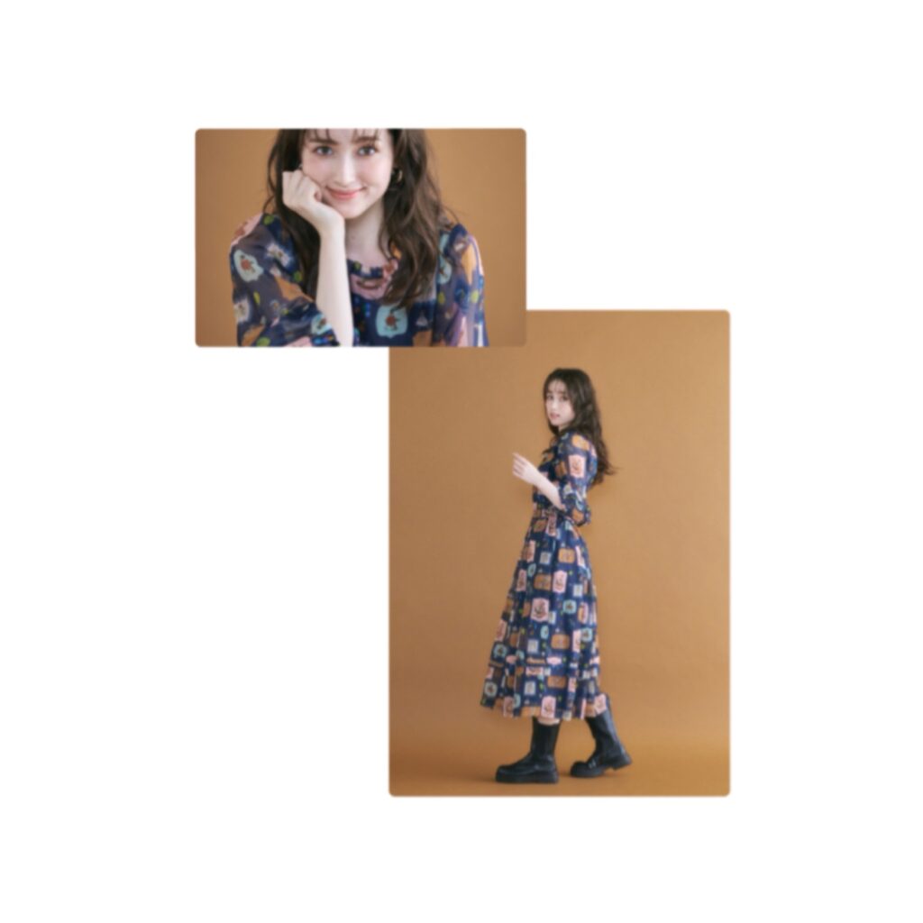 いろんなシチュエーションのイラストをバランスよくMIXしたプリントはJolly poupee×くらはしれいのオリジナルコラボプリント。ブラウスはふんわりしたボリュームのある袖が気分を高めるワンポイントに