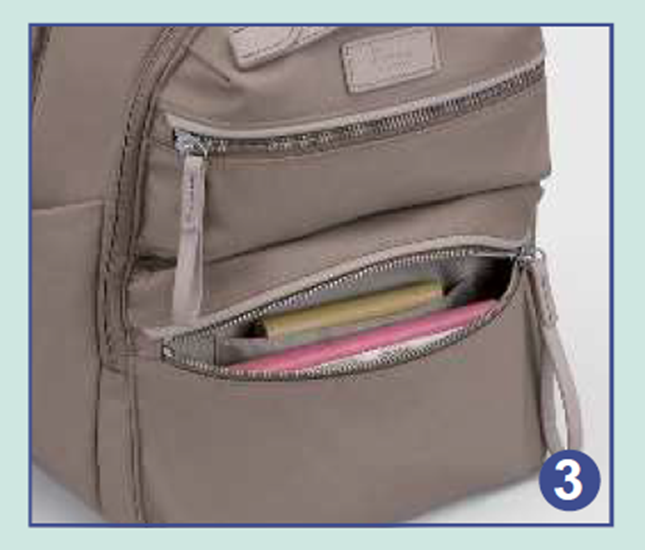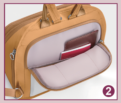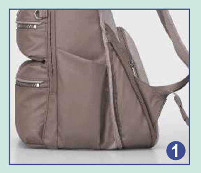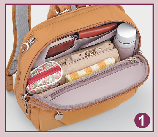 街歩きに必要な小物が収まる充実したポケットやセキュリティロックがポイントです。
