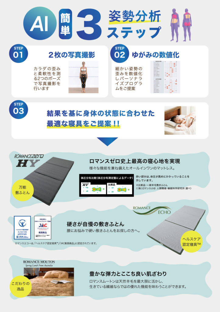 お客様の身体の状態に合わせた最適な寝具をご紹介いたします。