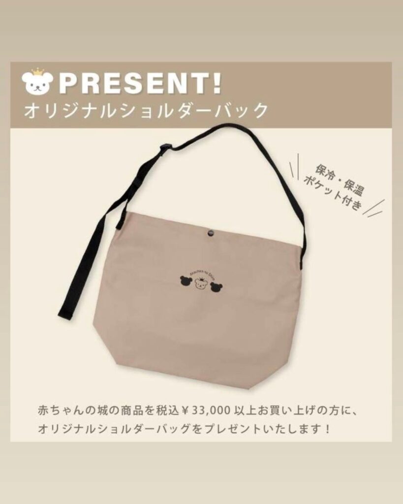 赤ちゃんの健やかな成長に最適なベビー寝具から、着心地のいい肌着、ウェア、小物まで、出産に必要なアイテムを多数取り揃えております。期間中、33,000円以上お買い上げの方にオリジナルショルダーバッグをプレゼントいたします。
