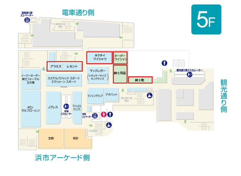 5階 紳士フロア「アラミス」「レセント」「ネクタイ・ワイシャツ・オーダーワイシャツ」
