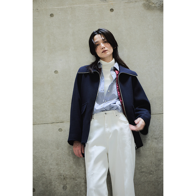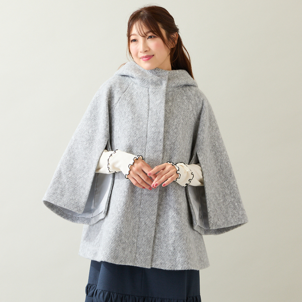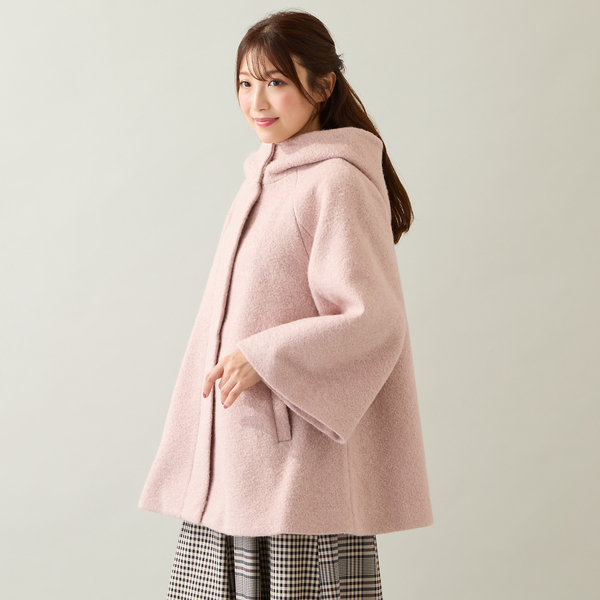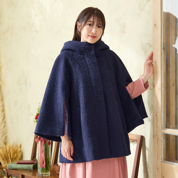ウールのような温かみのある表情感とふくらみのある素材を使用ふわふわとしたループ状の表面感が愛らしい印象に軽く羽織れて温かく、ジャージーならではの伸縮性の高さで着心地も軽やか上質な素材を贅沢に使用し、重ね着しても軽く羽織れる暖かいコート袖にはファスナーがついているので、開けてポンチョとしても着用可フロントファスナー開き
