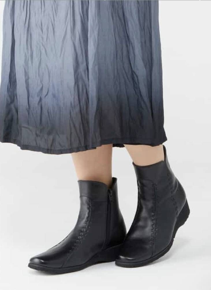 飾りステッチを施した、おしゃれ感のあるショートブーツ