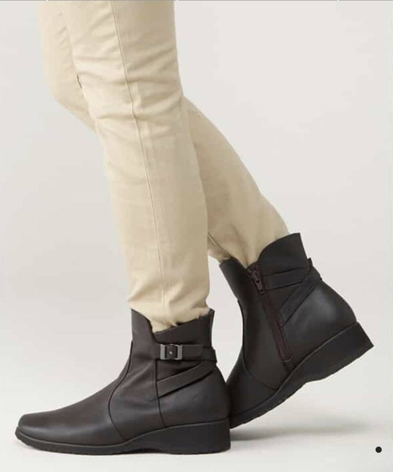 人気の3.5cmヒールブーツ。サイドのバックルもきらりと光るポイント。
