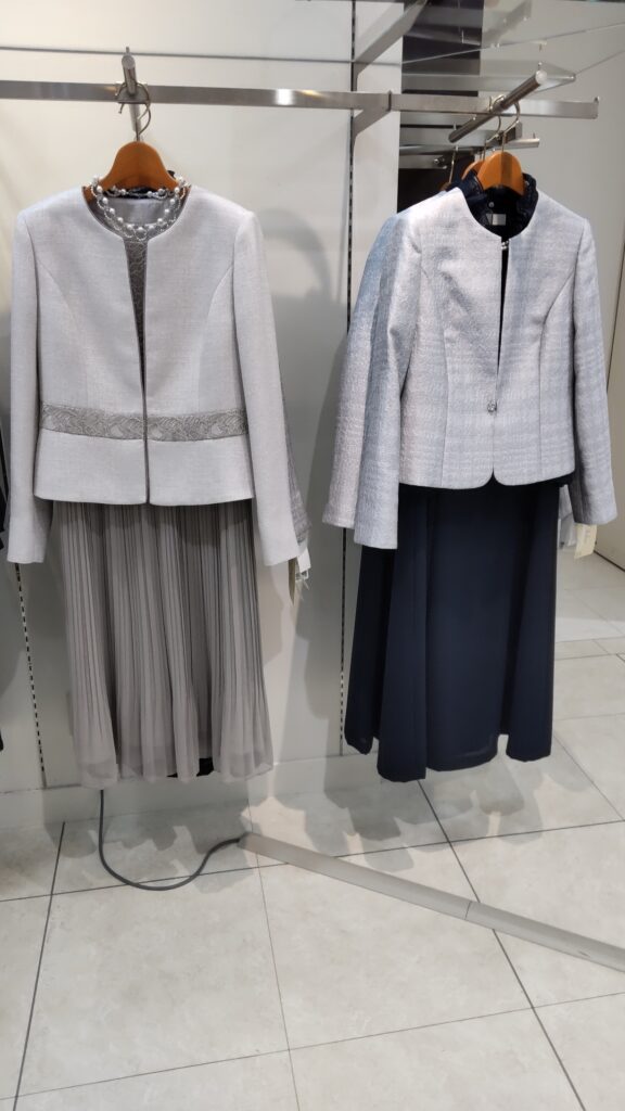 ジャケット無しでワンピースだけでも活躍できジャケット羽織るとよりきちっと感がある商品です。
