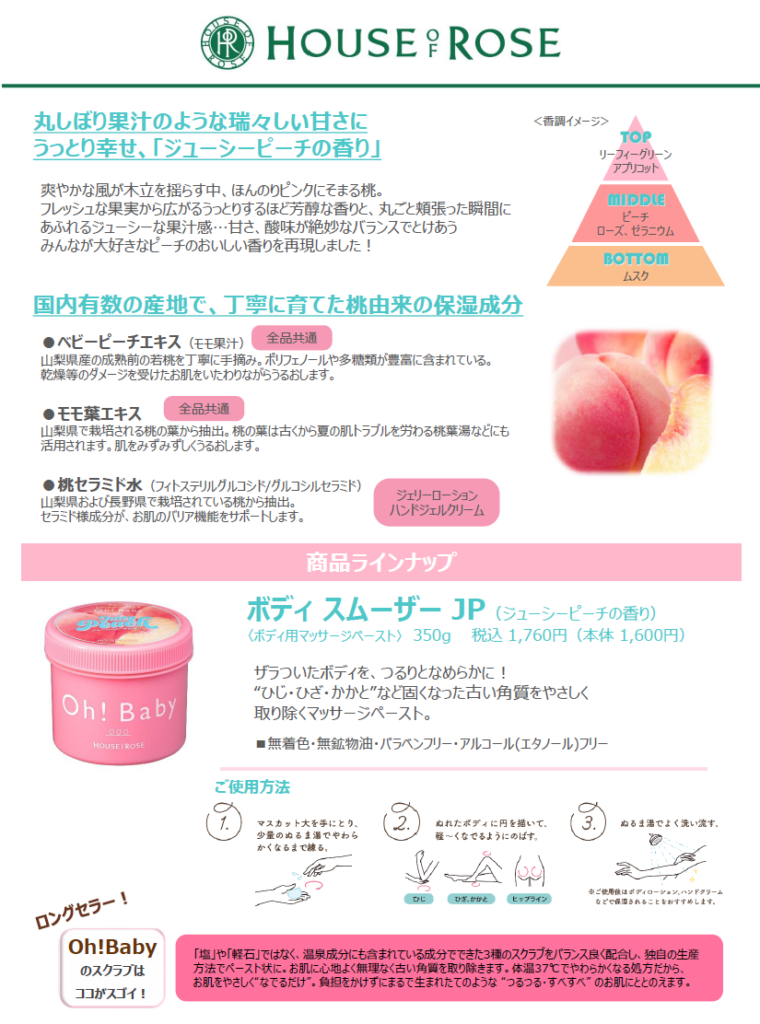 大人気の「ボディ スムーザー」 から、『ジューシーピーチの香り』 が新登場!