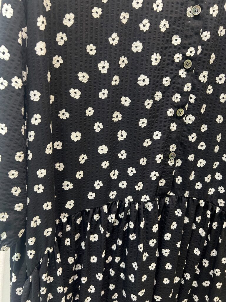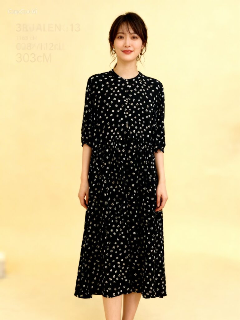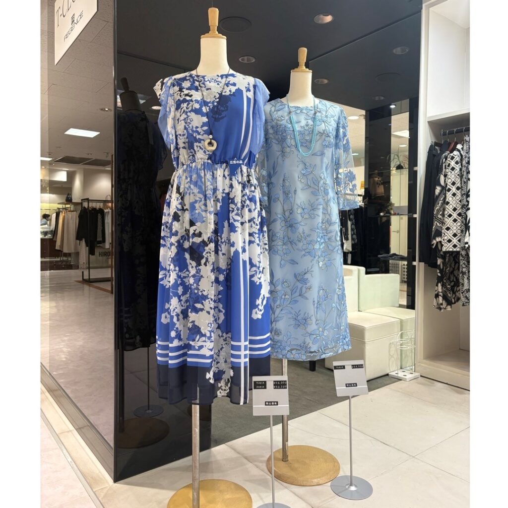 色/ネイビー ブラックの2色展開 素材/レーヨン60%綿40%     サイズ/11号〜19号  金額/28,600円(税込)