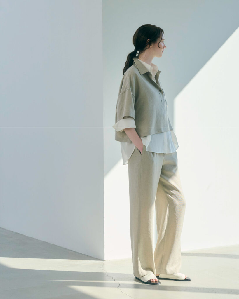 コムサの夏の永久定番である麻は、創業以来進化させ、提案し続けてきた素材です。人気のストレッチリネンが、より薄く軽やかにアップデートして登場しました。日常に寄り添い、日本の夏を快適にする心地よさです。
