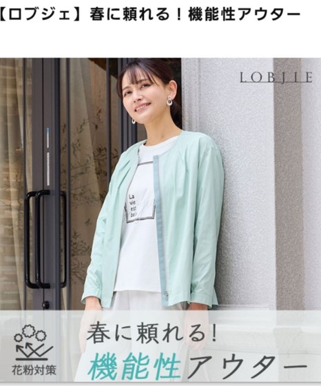 【花粉対策】ノーカラージャケット 素材 ポリエステル 65% ナイロン 15%