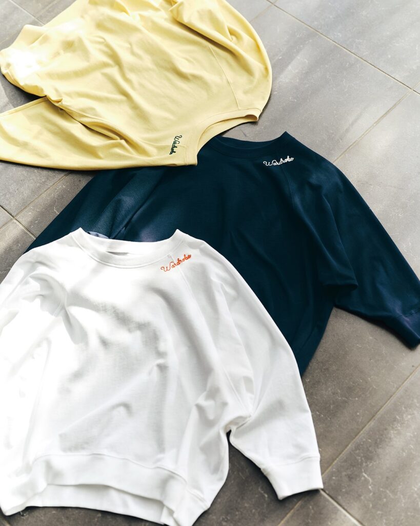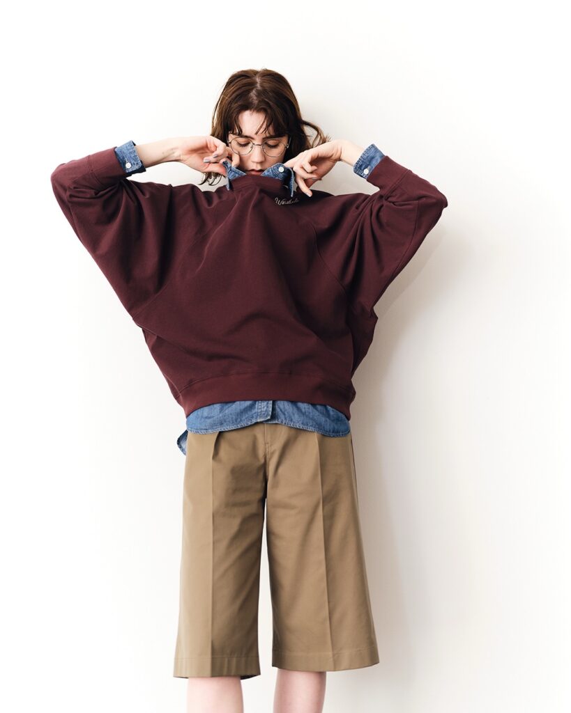 アームホールをたっぷりとした分量にし、身体から離れるサイズ感にしたプルオーバーは、シャツやTシャツをレイヤードしてももたつきません。トレーナーとTシャツの中間のような、春にぴったりのアイテムです。