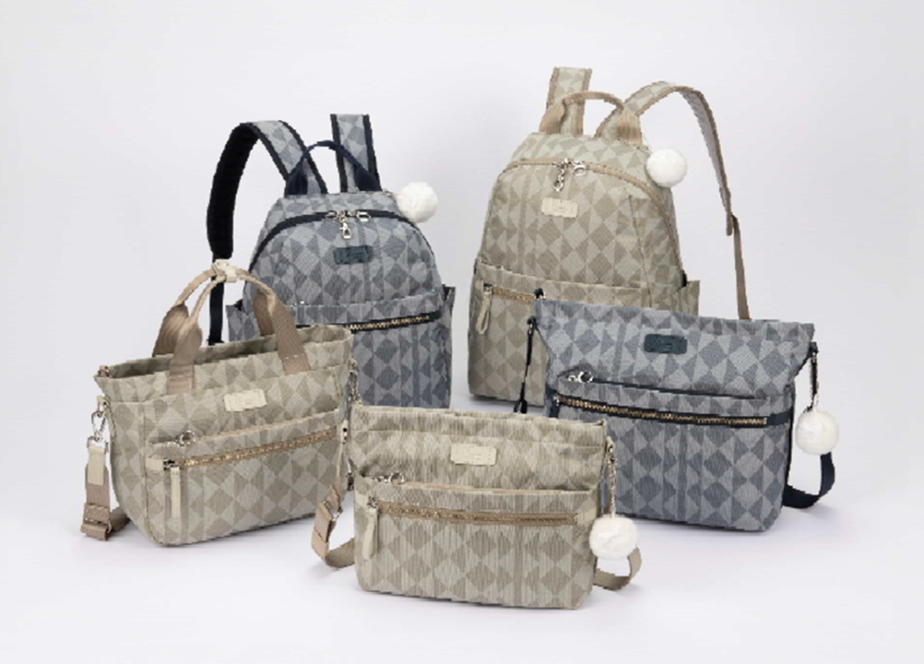 本体にサスティナブルな素材を織り上げたオリジナル柄ジャガード生地を使用したシリーズ。上品な光沢としなやかな張りがあり、軽量で撥水性に優れています。上質でエレガントな印象ながらも、涼やかに軽やかに持てるようこだわりの素材で仕上げました。